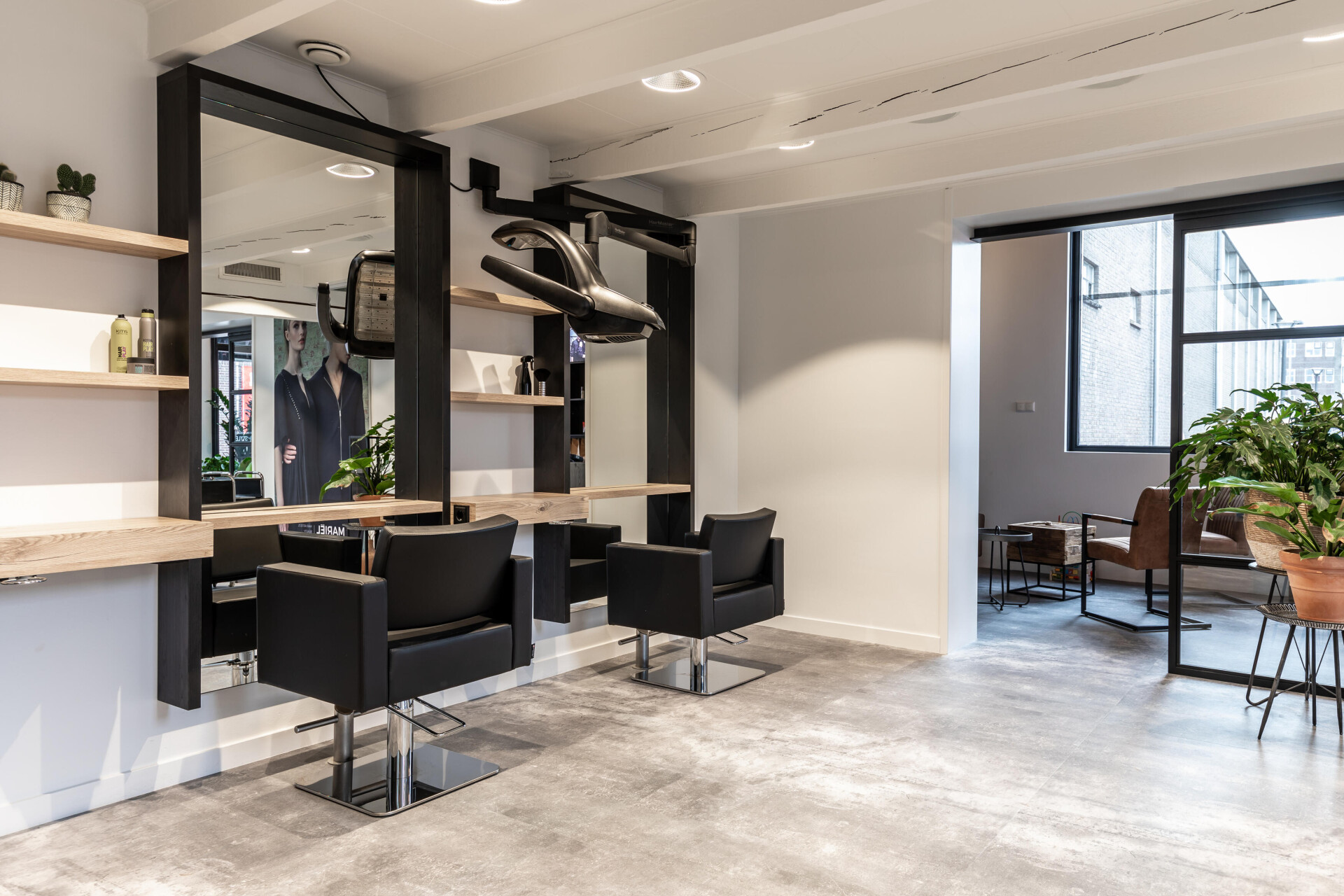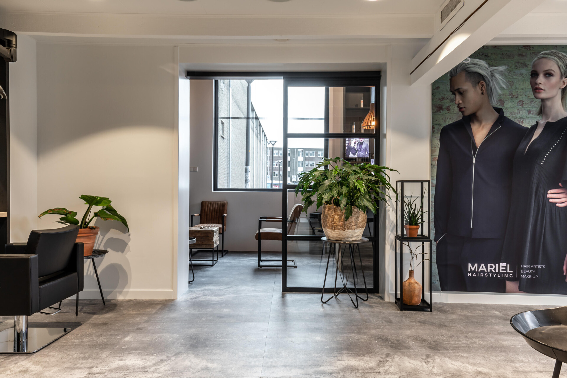 V kadeřnictví Mariël hraje velkou roli kromě profesionálního kadeřnictví také relaxace v příjemném prostředí a atmosféře. Betonové dlaždice ze série Stone dodávají interiéru tvrdý a klidný základ. Krásně tak vynikne zbytek interiéru.