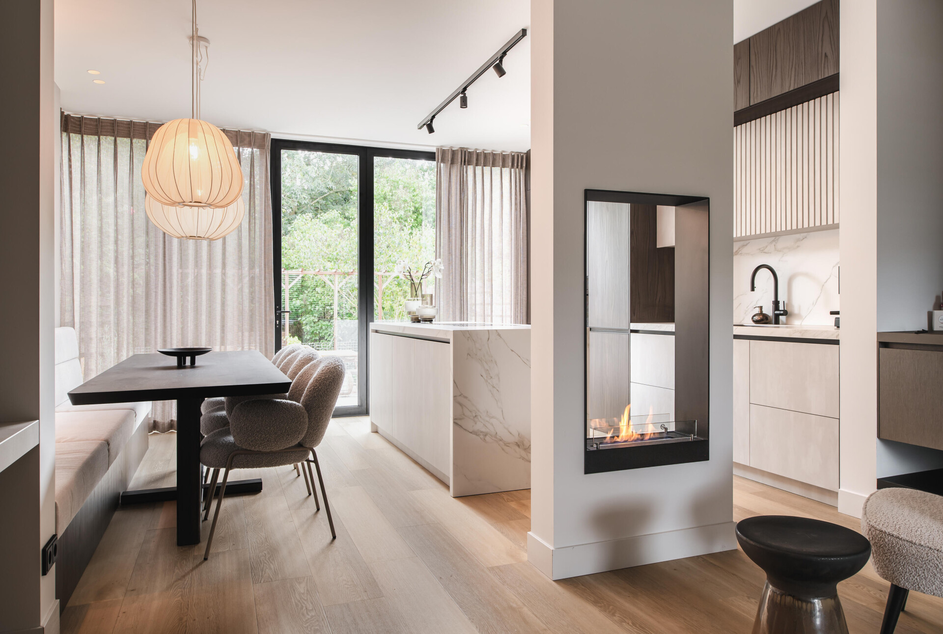 V tomto luxusním a teplém domě bylo použito několik prvků vyrobených na zakázku, takže všechny barvy a materiály spolu dokonale ladí.