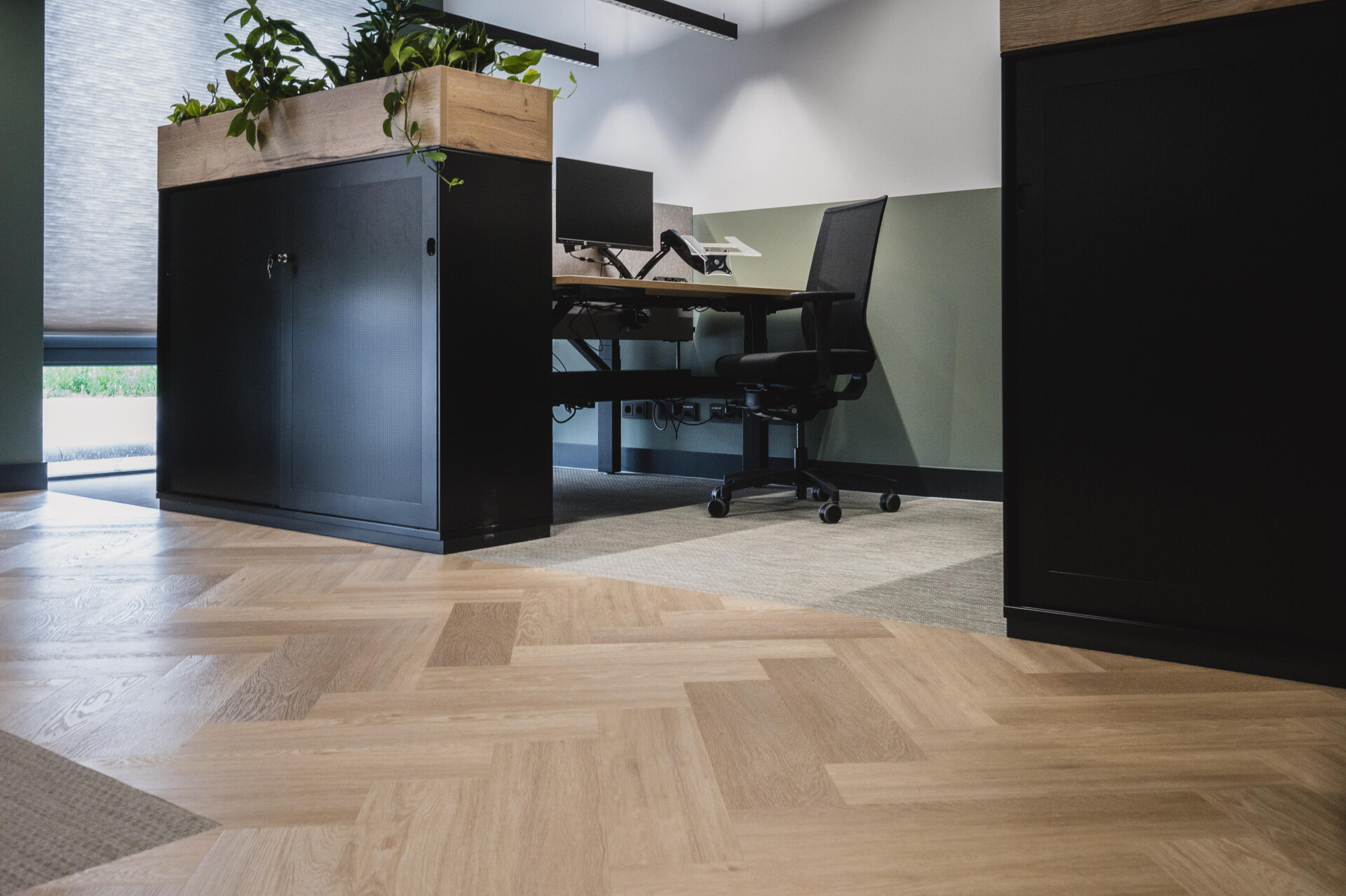Nathalie z Interiorboost byla od A do Z zapojena do realizace tohoto nového pracovního prostředí. Pro tento projekt zvolila Chevron 6041, světlou dubovou podlahu, která tvoří dokonalý základ.